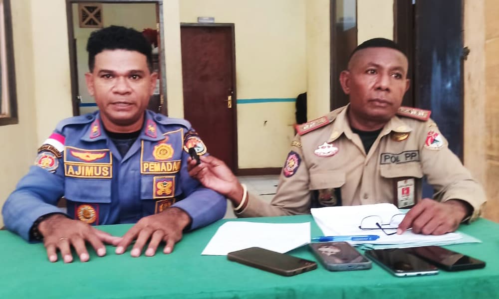 Kepala Seksi Bidang Penegakan Perundang-undangan Satpol PP Sikka, Yosef Nong (kanan), didampingi Kabid Damkar A. Jimus (kiri). (GARDAFLORES/KAREL PANDU)