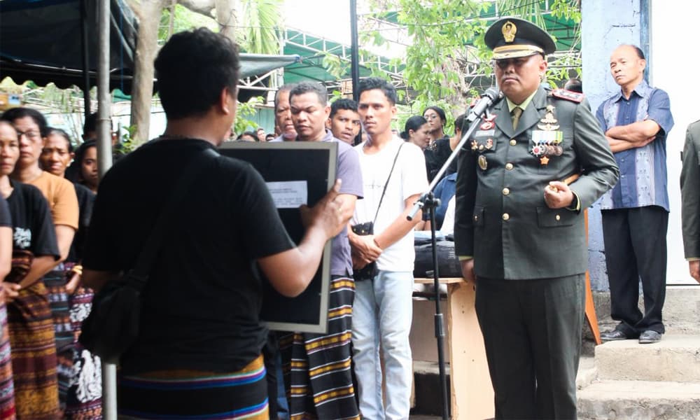 Pada pukul 11.10 Wita, keluarga menyerahkan jenazah kepada Dandim 1603/Sikka untuk dimakamkan secara militer. Upacara berlangsung khidmat dengan penghormatan salvo, penimbunan liang lahat, dan peletakan karangan bunga oleh inspektur upacara serta pihak keluarga.