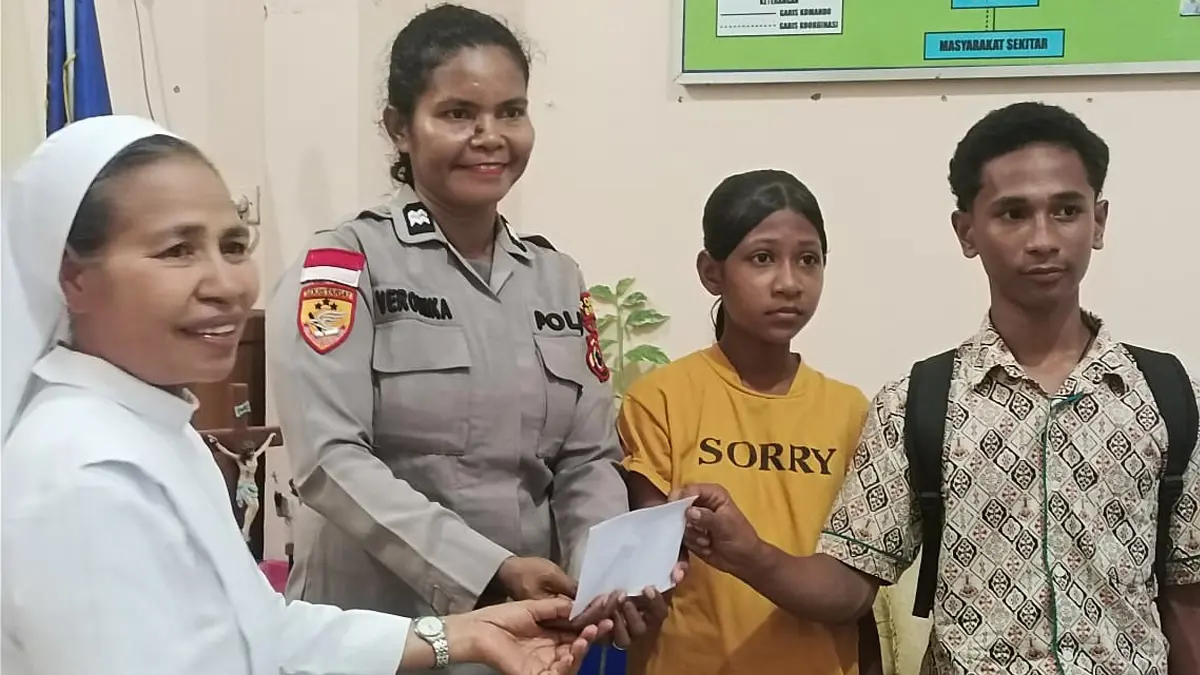 Polres Sikka juga menyalurkan bantuan keuangan kepada siswa kurang mampu dan anak putus sekolah.