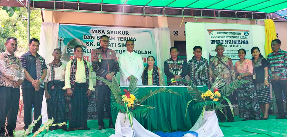 Maumere, GardaFlores — Pemerintah Kabupaten Sikka resmi mengalihkan status SMP St. Paulus Pogon menjadi SMP Negeri 50 St. Paulus Pogon dengan NPSN 69974971. Penyerahan SK Bupati dilakukan dalam sebuah upacara adat yang berlangsung di Wolontibang, Desa Pogon, Kecamatan Waigete, Kamis (27/11/2025). Proses seremonial yang kental dengan nuansa budaya itu menandai tonggak penting bagi percepatan pemerataan pendidikan di wilayah timur Kabupaten Sikka.