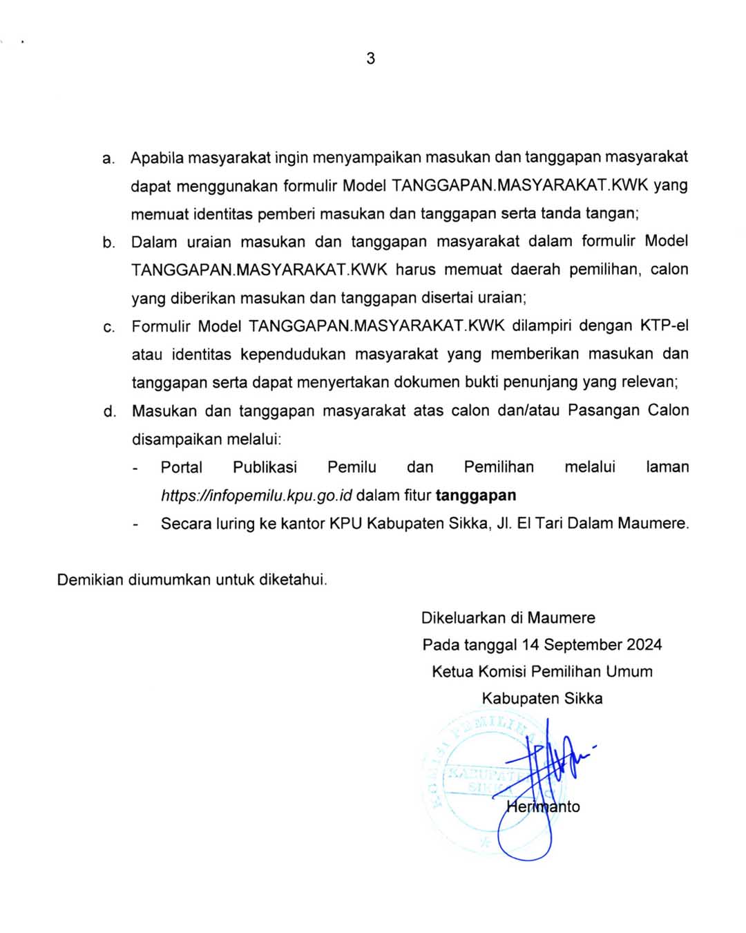 Hingga saat ini, KPU Kabupaten Sikka masih melanjutkan proses pemutakhiran data partai politik secara berkelanjutan dengan menjadwalkan koordinasi serupa bersama partai lain guna memastikan kesiapan seluruh peserta pemilu sesuai ketentuan yang berlaku.»(rel)