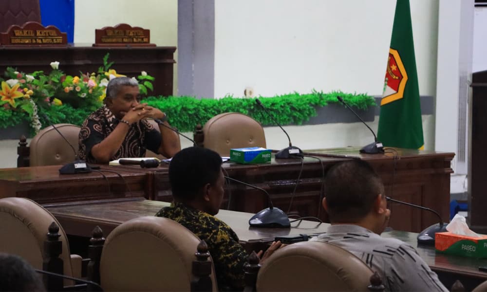 Wakil Ketua DPRD Sikka Gregorius Nago Bapa ketika mendengar aspirasi yang disampaikan oleh Persatuan Mahasiswa Katolik Republik Indonesia (PMKRI) Cabang St. Thomas Morus Maumere di Kantor DPRD Kabupaten Sikka, Kamis (6/11/2025). (GARDAFLORES/KAREL PANDU)